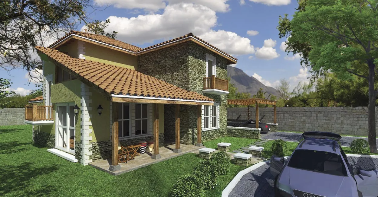 Two-story family home (2,400 sq ft), rural colonial style. An exclusive design merging comfort and tradition.