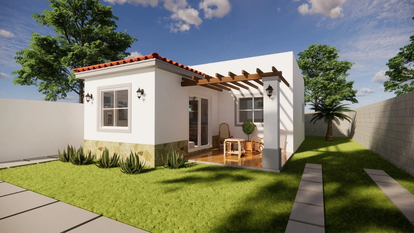 El modelo Hera se adapta de forma ideal a terrenos desde 10.5 metros de frente por 17 metros de fondo, permitiendo una implantación equilibrada que optimiza el uso del lote y facilita una relación natural entre los espacios interiores y exteriores.