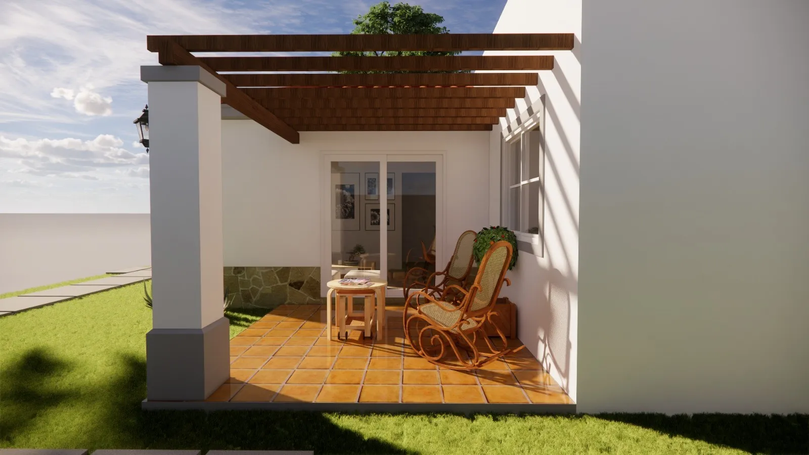 - Terraza con pérgolas