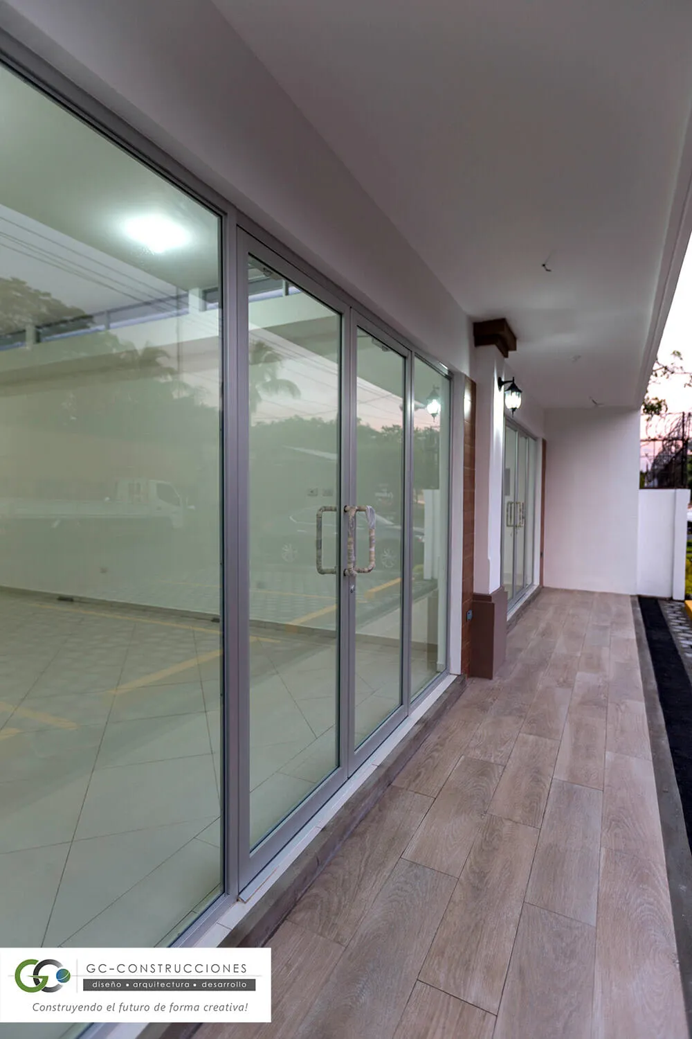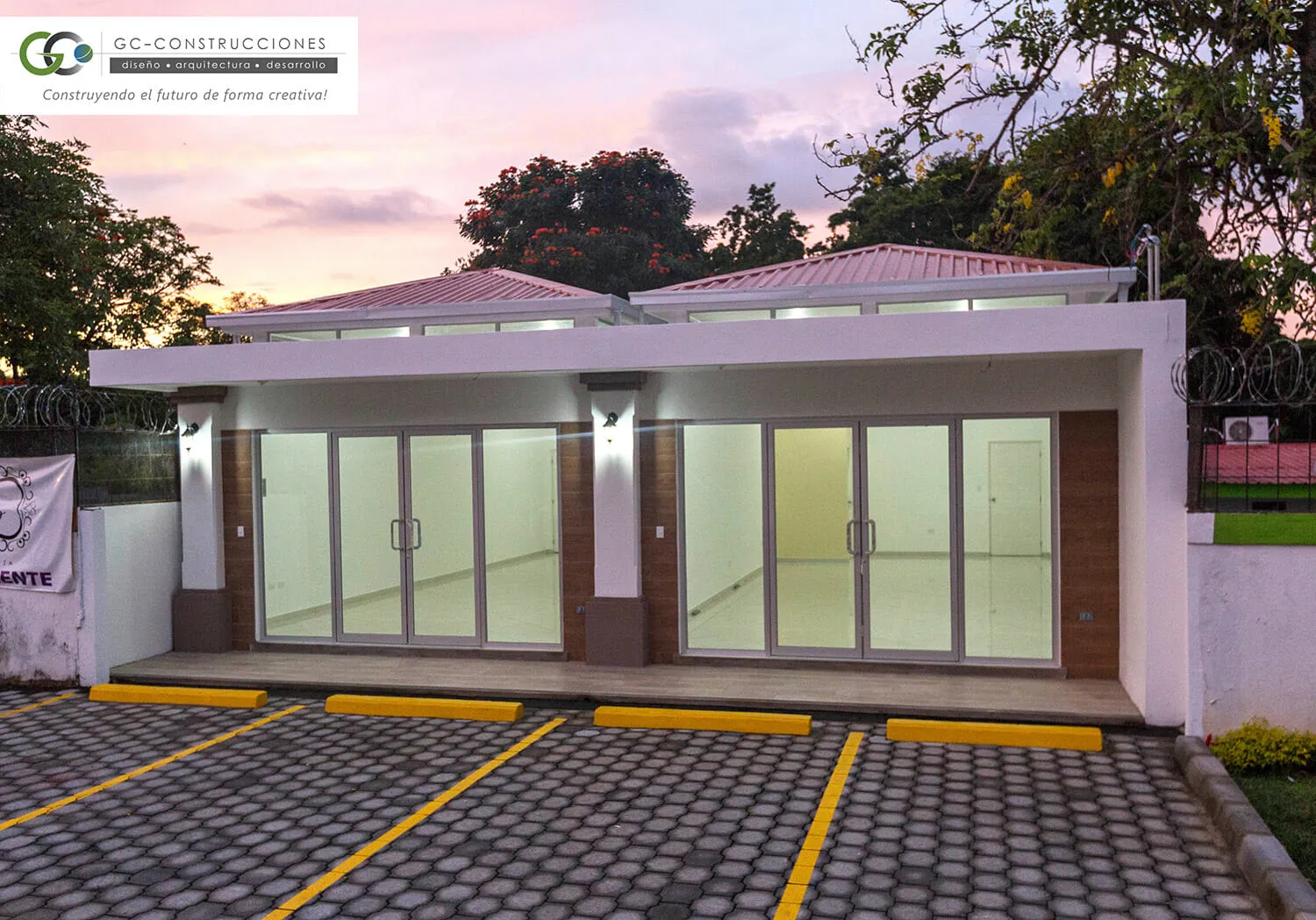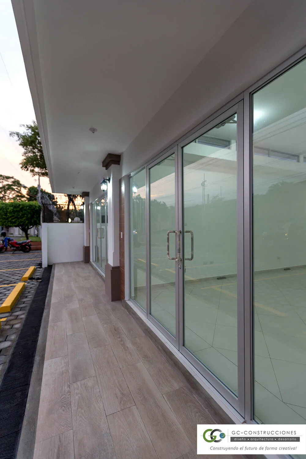 Primera etapa de la Plaza Comercial MS, ubicada en Las Colinas, Managua. Un diseño moderno y funcional de 120.5 m² que optimiza el espacio comercial y ofrece una estética atractiva.