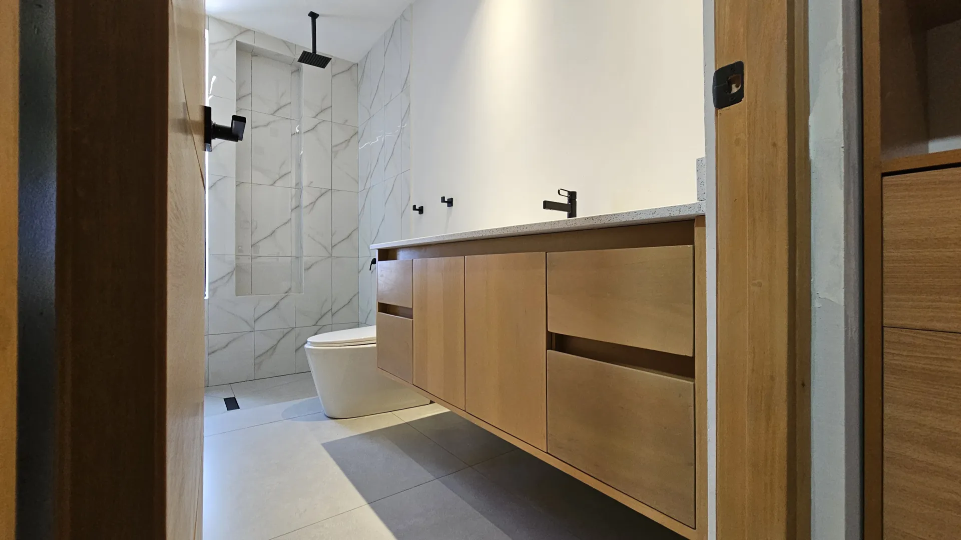 Acabados de lujo marca Kohler, pisos de porcelanato español y sistemas de iluminación LED inteligente para máxima eficiencia.