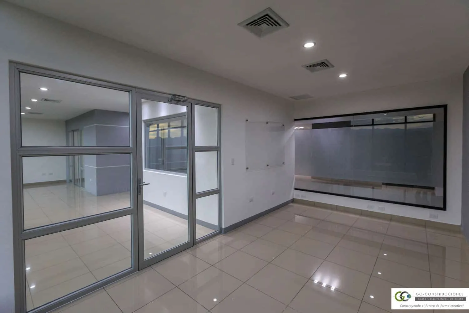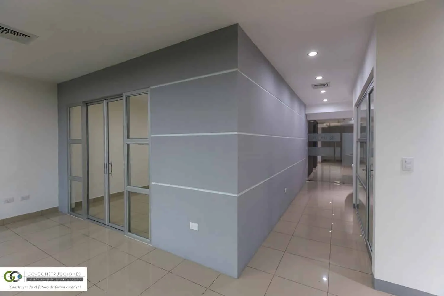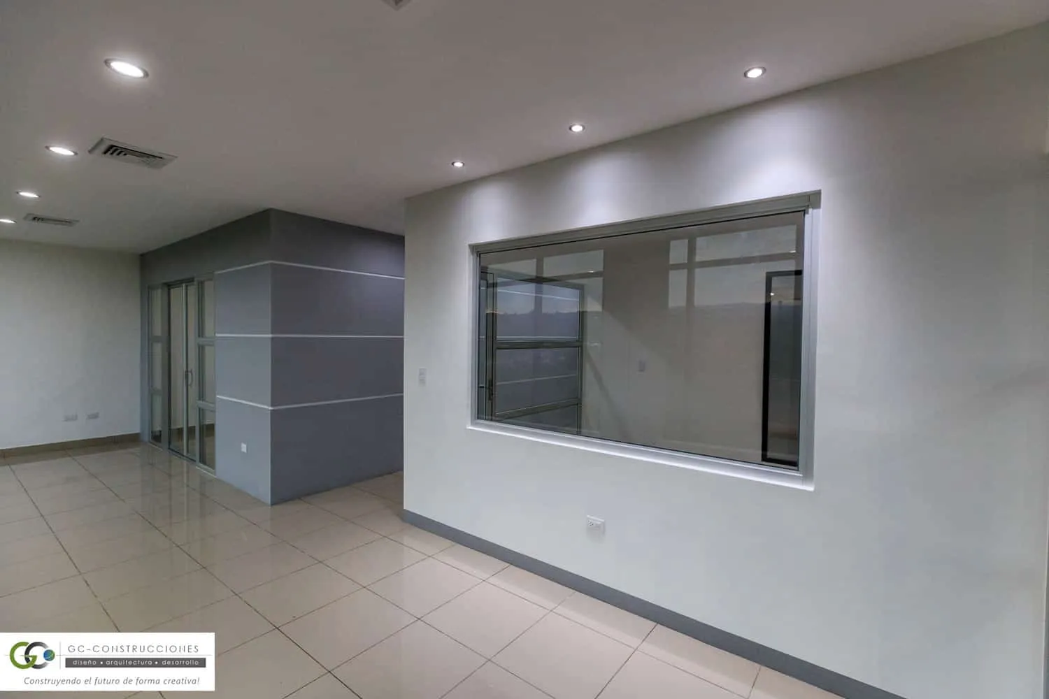 Construcción de Oficinas Administrativas Aseguro en Nicaragua. Incluye gerencia, sala de reuniones y áreas operativas (91 m²).