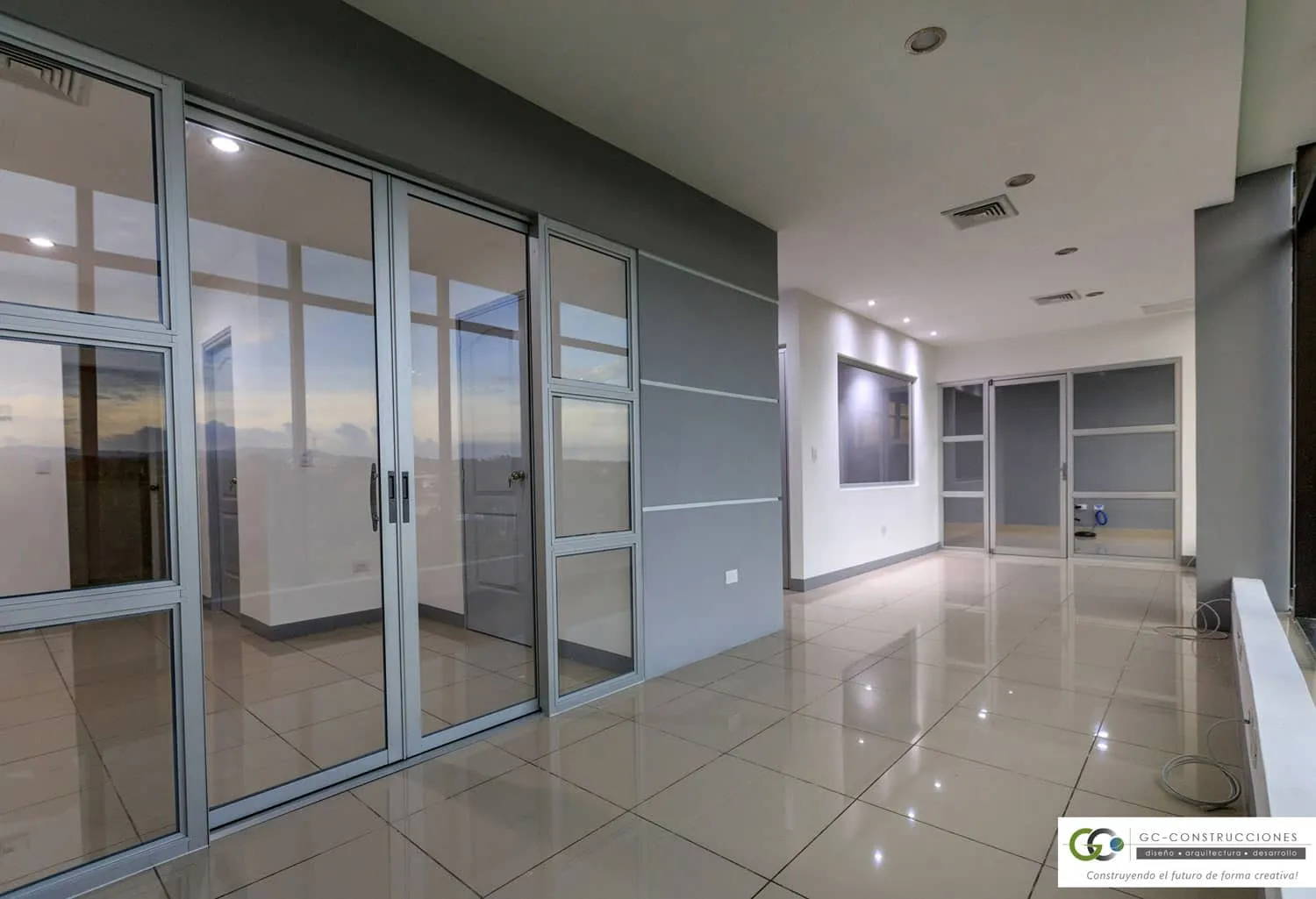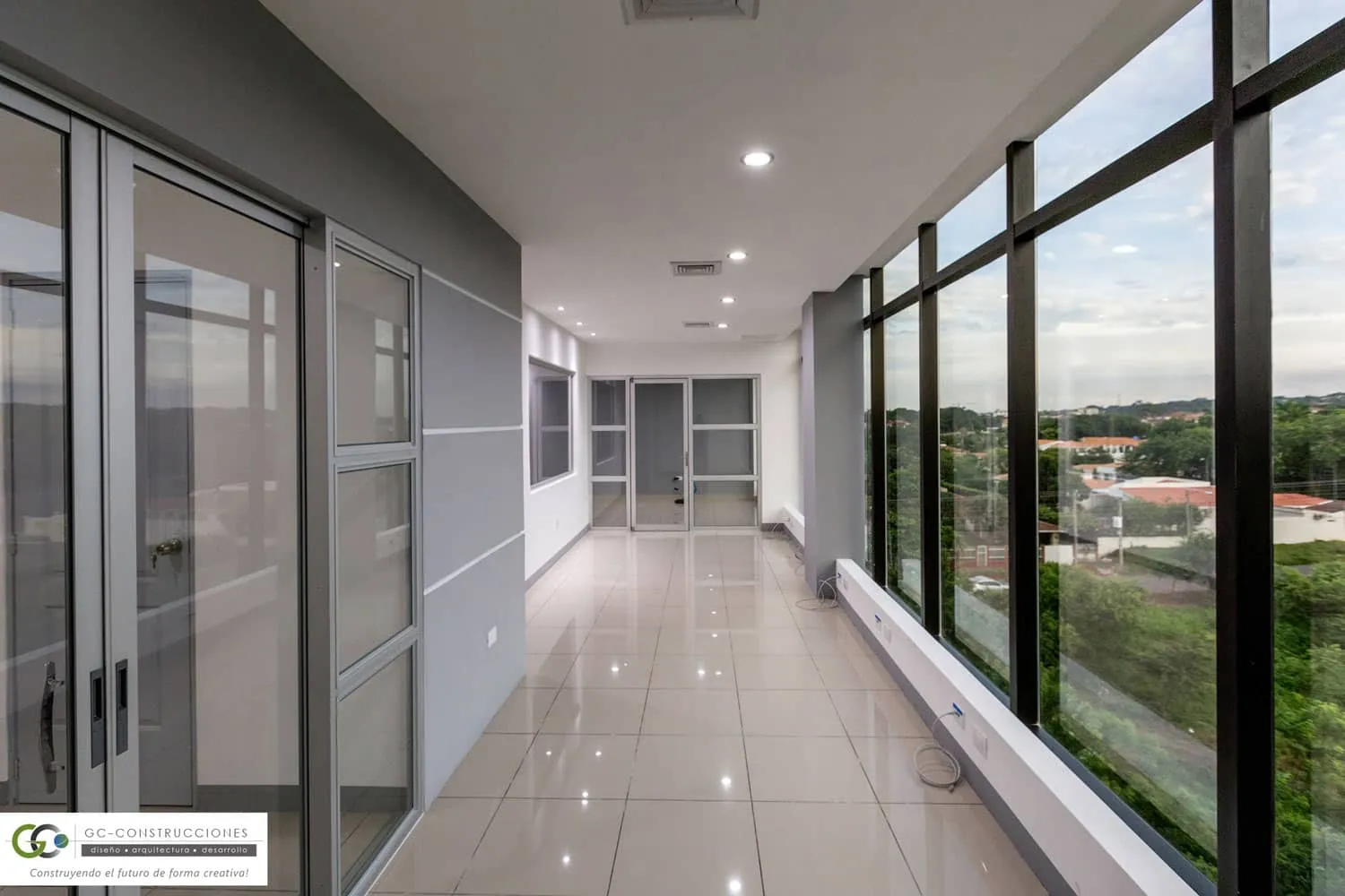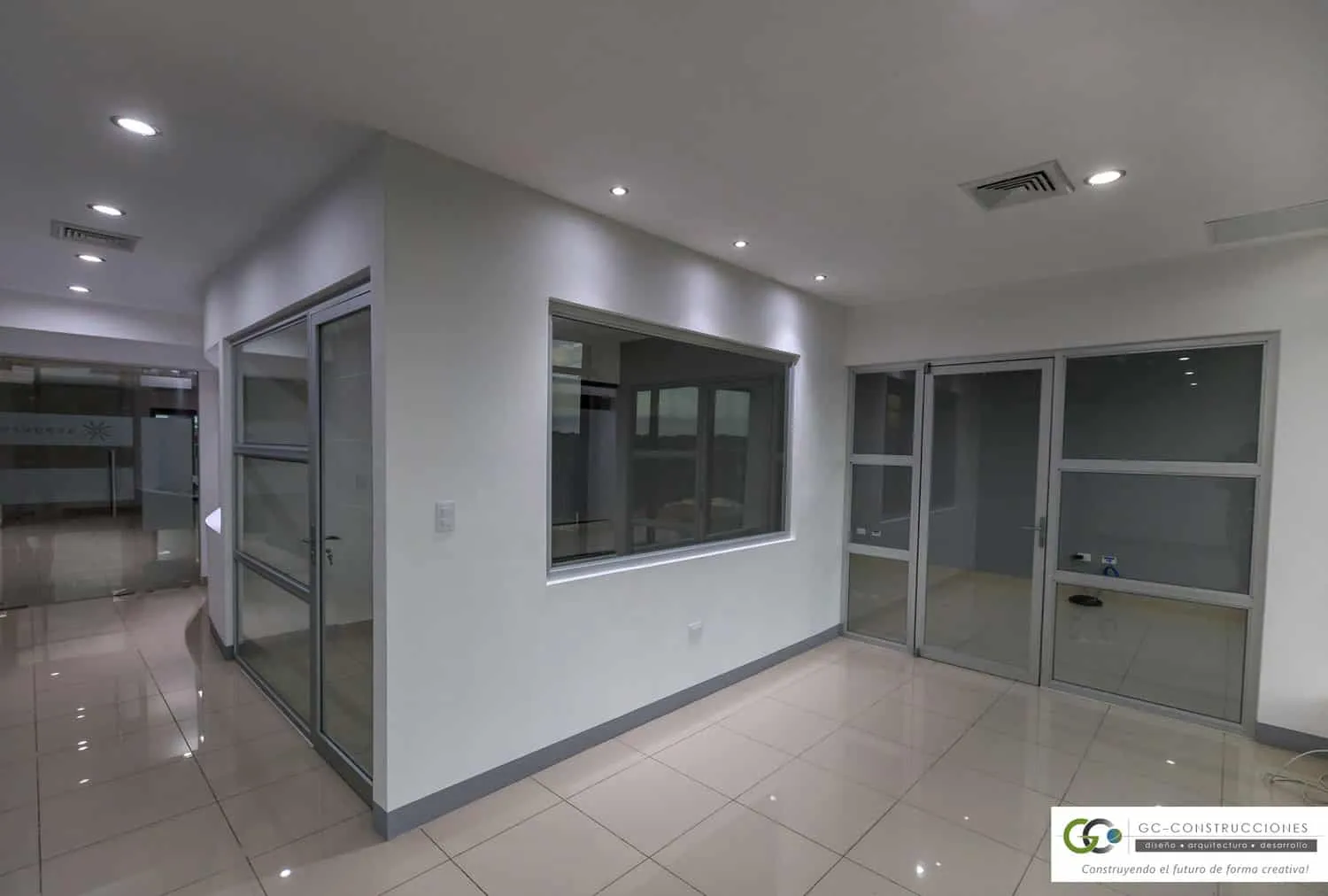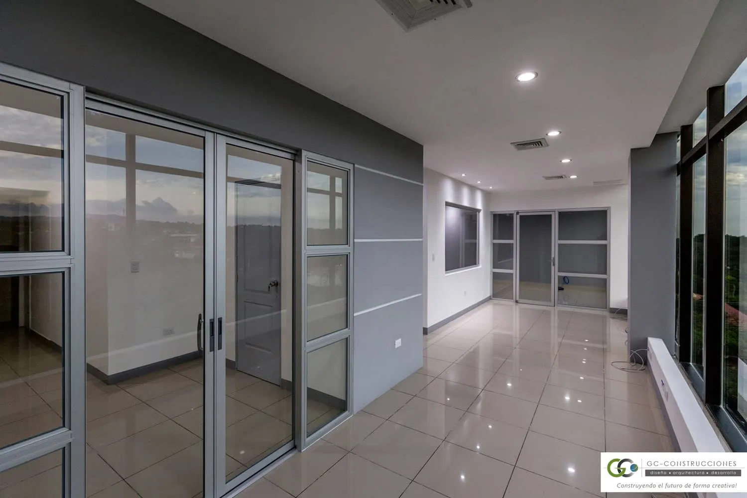 Construcción de Oficinas Administrativas Aseguro en Nicaragua. Incluye gerencia, sala de reuniones y áreas operativas (91 m²).